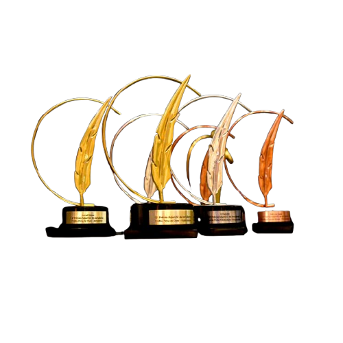 Os vencedores recebem os troféus Pena de Ouro, Prata e Bronze, atribuídos ao primeiro, segundo e terceiro colocados em cada categoria, conforme a soma das notas atribuídas pelos jurados.