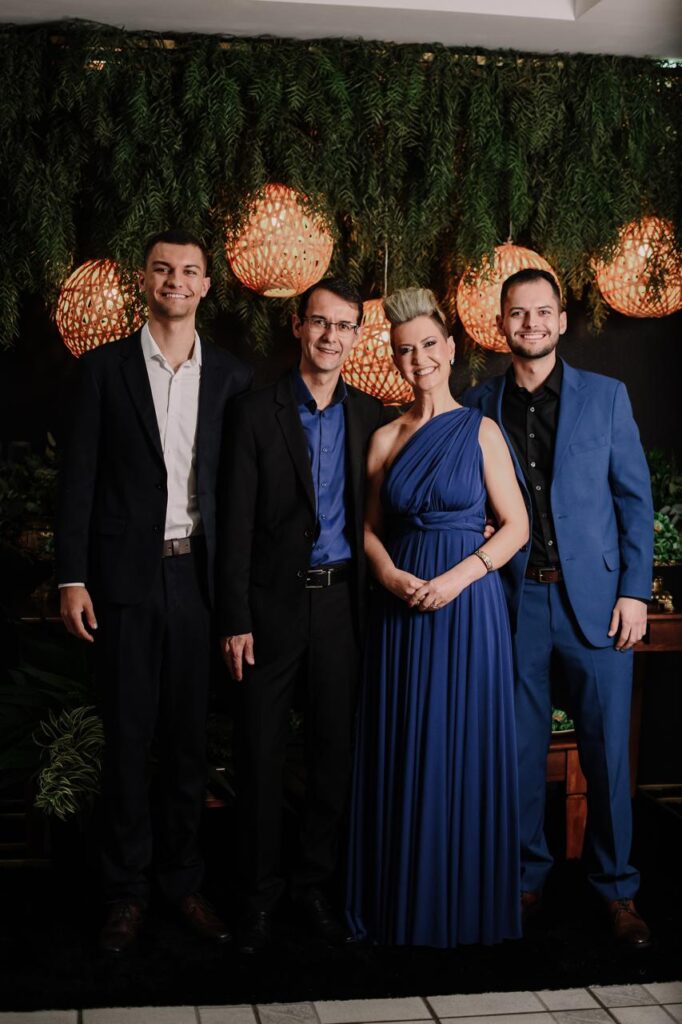 Dr. Wiliam Soltau Dani ao lado de sua esposa Candice Abella e os filhos Dr Ruy Cesar A. F. Neto e Willian filho celebrando seus 50 anos em uma noite marcada por afeto, união e gratidão. Uma família que representa o alicerce de sua trajetória pessoal e profissional.