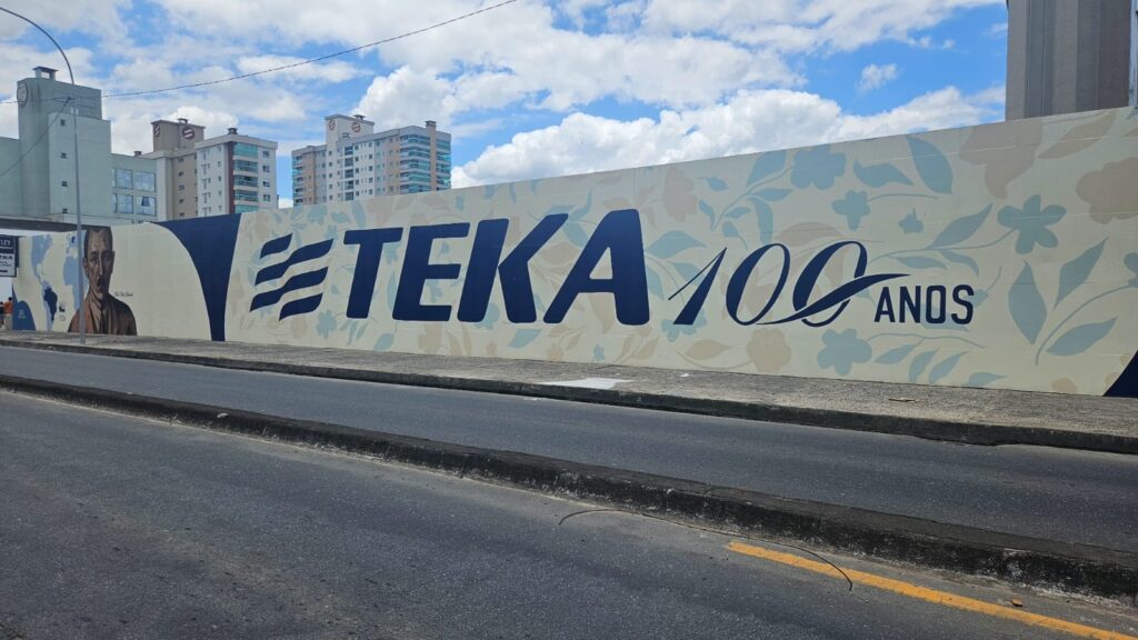 Pintura artística no muro da Teka celebra 100 anos da empresa e é entregue à comunidade