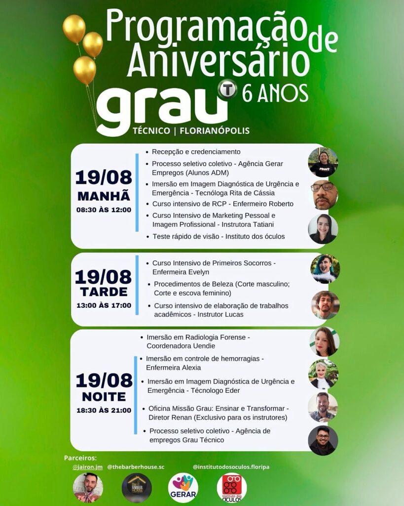 GRAU TÉCNICO COMPLETA 6 ANOS EM FLORIPA DIA 19/08 COM PROGRAMAÇÃO ESPECIAL