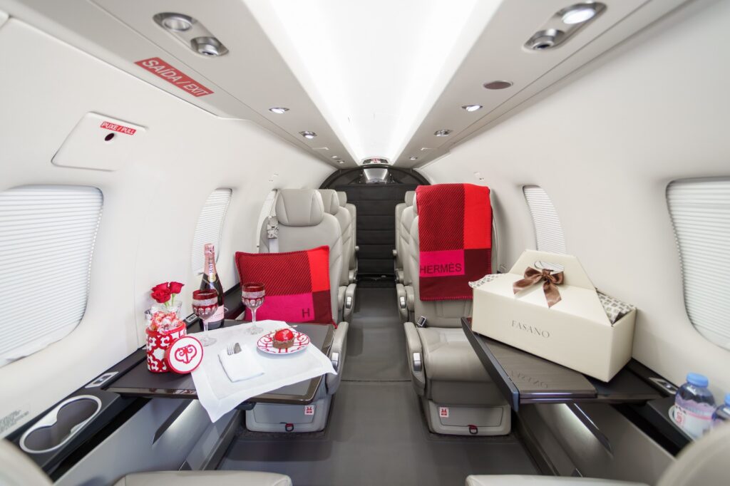 Com bases próprias no Aeroporto Catarina, em São Roque (SP), e parceria com o Hangar Premier, no Aeroporto de Congonhas (SP), a Amaro Aviation valoriza cada etapa da experiência do cliente. Ao chegar ao hangar, o passageiro é recebido pela tripulação e pode optar por um café ou espumante de boas-vindas. Tapete vermelho, flores frescas, chocolates suíços e um catering de alto padrão, assinado por restaurantes renomados, ajudam a transformar o embarque em uma ocasião especial.