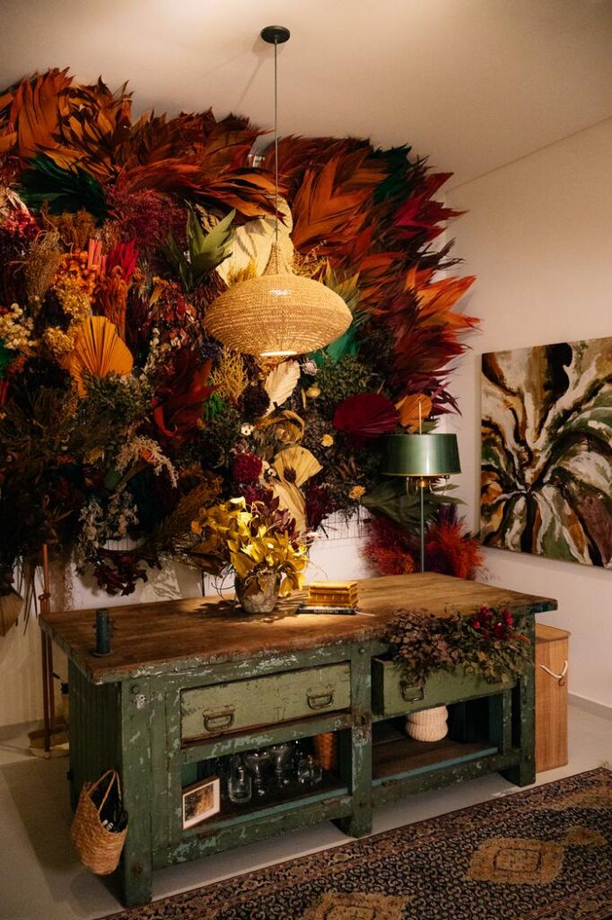 “Fiz minha transição de carreira em 2017, e migrei para o universo da decoração de interiores, onde também, com o passar do tempo veio a paixão e formação da arte floral, que é meio onde coloco para fora a minha expressão na criação de arranjos, usando o método de flores desidratadas, que são eternizadas através dessa técnica milenar”, explica.