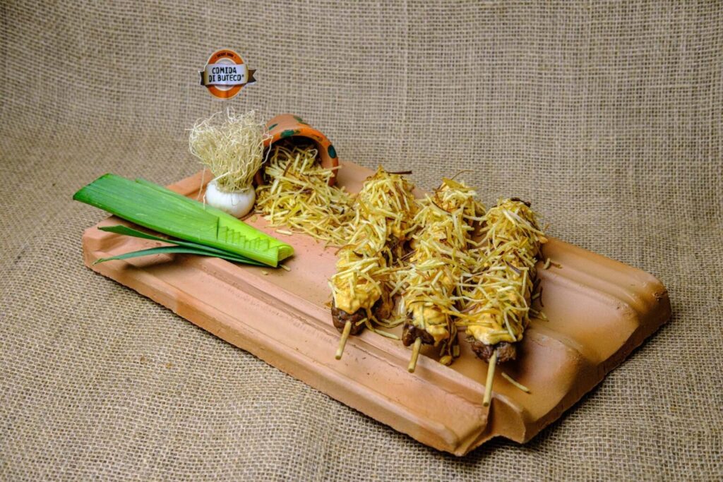 - Quintal 32 – Spetonoff ao Poró: espetinho de carne bovina, com molho de strogonoff, coberto com crispy de alho poró e batata palha.Rua Cruz e Souza, 32, Centro.