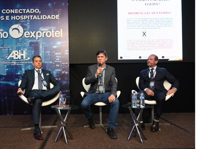 s advogados Huilder Magno de Souza e Neilor Schmitz foram os especialistas convidados pelo Encatho para atualizar os hoteleiros sobre as novidades jurídicas que afetam as operações dos empreendimentos. Com mediação do hoteleiro Luciano P. Oliveira, os especialistas explicaram primeiro sobre o Egeda, que busca arrecadar direitos autorais de filmes, séries e outros conteúdos transmitidos em plataformas ou áreas comuns em ambientes hoteleiros.