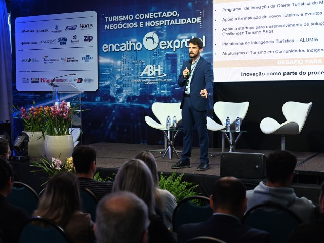A integração entre pessoas, lugares e propósito foi o destaque da palestra “Gestão de Destinos: Inovação e Responsabilidade”, apresentada pelo consultor e especialista Bruno Wendling no 36º Encatho & Exprotel, na Sala Joaquina. O evento reuniu hoteleiros, gestores públicos e empresários interessados em novas estratégias para o desenvolvimento turístico sustentável.