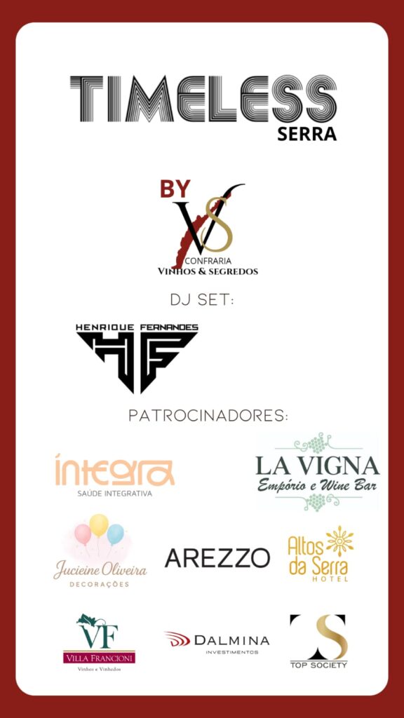A Serra Catarinense se prepara para receber um evento que promete unir sofisticação, música e memória afetiva. No dia 8 de novembro de 2025, a vinícola Villa Francioni, em São Joaquim (SC), será palco da festa Timeless Serra, que celebra os dois anos da Confraria Vinhos & Segredos de Lages.