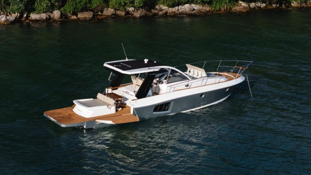 No visual externo, a Fishing 440 Raptor impressiona à primeira vista. O parabrisa inteiriço e a targa inspirada em modelos europeus destacam o DNA esportivo da embarcação, enquanto o design fluído reforça o apelo de luxo e exclusividade. Mas o grande diferencial está na popa: duas portas hidráulicas expansíveis criam uma área de convivência integrada ao mar, que transforma o deck em um verdadeiro lounge sobre as águas.