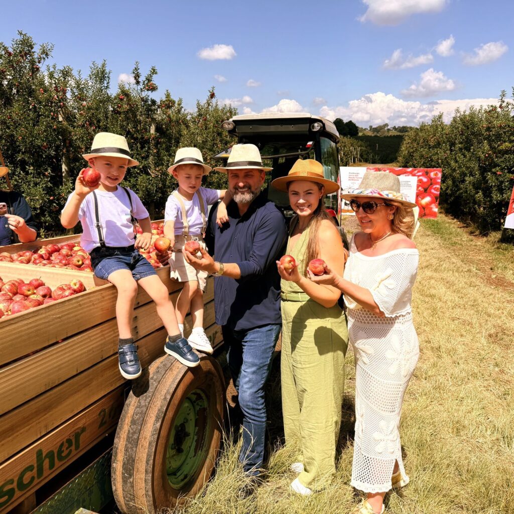 Na fotografia, o presidente da ABRAJET-RS, Juarez Tavares, ao lado de sua esposa, Dayane Aflen, de seus filhos, Valentim Alflen Tavares e Vicente Alflen Tavares, e esta colunista, celebrando a força do jornalismo de turismo e do setor agrícola.