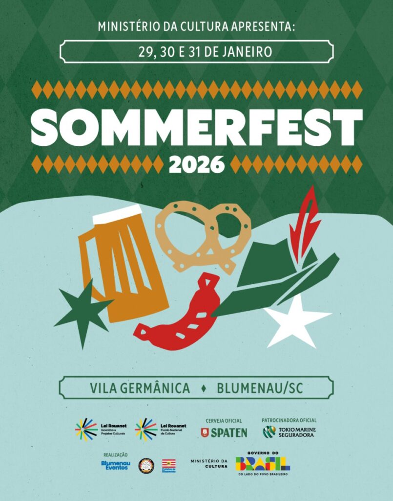 O Sommerfest 2026 ocorre de 29 a 31 de janeiro, promovido pela Prefeitura de Blumenau, por meio do Blumenau Eventos, e do Ministério da Cultura e Governo Federal, através da Lei de Incentivo à Cultura. A festa tem como cervejaria oficial a Spaten e conta ainda com patrocinadora oficial, a Tokio Marine Seguradora. O evento é gratuito e ocorre no Boulevard Spaten Garten e no Spaten Platz 4 do Parque Vila Germânica. Mais informações estão no perfil do Parque Vila Germânica no Instagram.