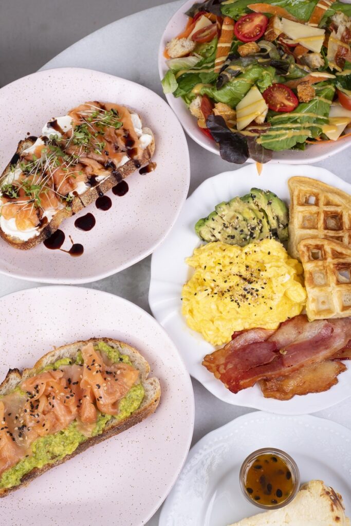 - Salgado (ovos mexidos com pão de fermentação natural e bacon, toast de avocado ou croissant caprese)