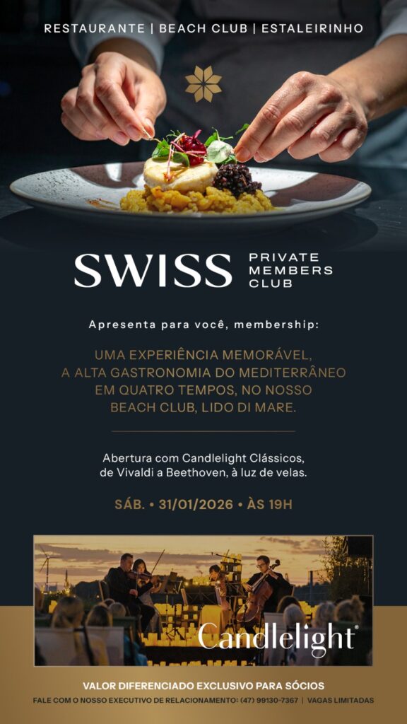 O Lido di Mare Restaurante by Swiss, localizado na Praia do Estaleirinho, em Balneário Camboriú, promove no próximo sábado, 31 de janeiro, a partir das 19h, uma noite que unirá alta gastronomia e música clássica em um cenário à beira-mar iluminado por velas.