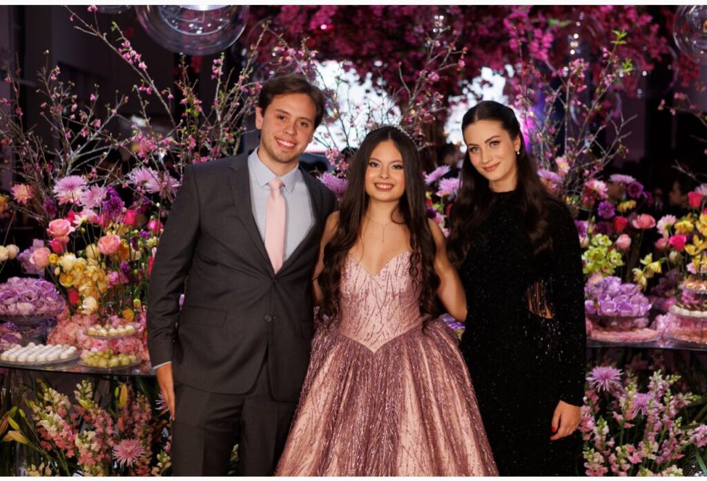 Isabella Paes Fernandes, Luísa Paes Fernandes e Lucas Adamis de Oliveira, juntos em um momento inesquecível, celebrando a alegria e a união da família em grande estilo.