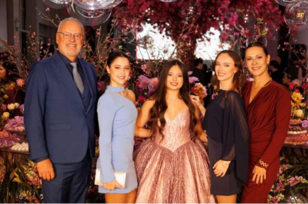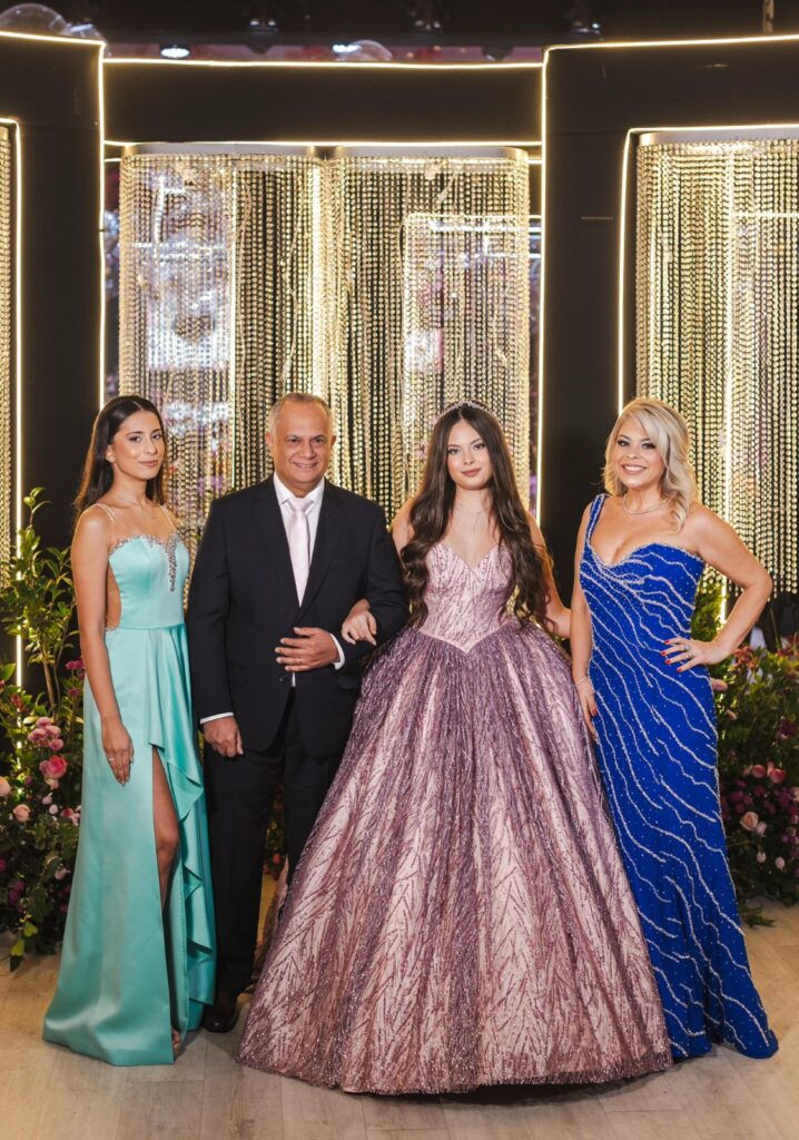 Otáviano Pamplona, Helena Pamplona, Maitê Pamplona e Fabiana Pamplona prestigiando a celebração dos 15 anos de Luísa — uma noite especial em família, repleta de carinho e elegância.