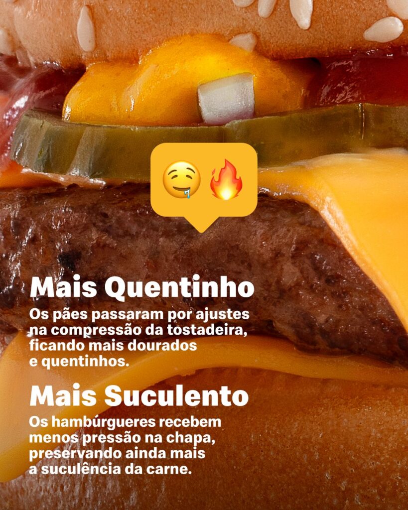 Ele reforça que o compromisso com a origem e a alta qualidade dos ingredientes segue inalterado. “Mantendo nosso compromisso com a qualidade, nossas equipes de cozinha foram treinadas para preparar os sanduíches de um jeito novo, que ressalta o sabor dos ingredientes e eleva a experiência com os nossos clássicos”, completa.