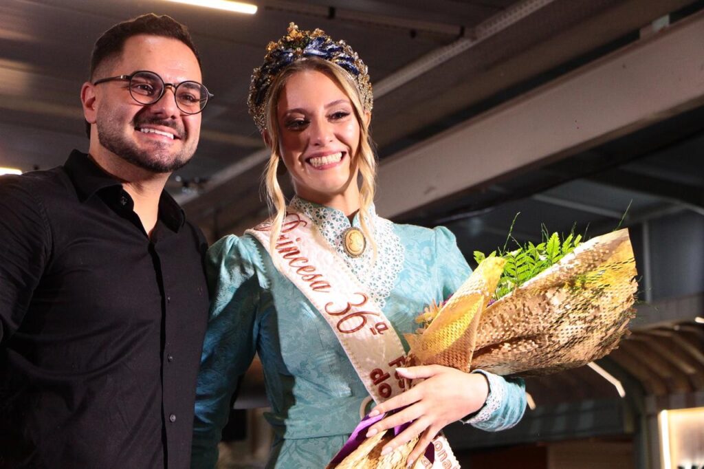 Emilie da Silva Pereira, de 22 anos, também compartilhou a emoção de ter sido escolhida princesa da 36ª Festa Nacional do Pinhão. A jovem destacou o sentimento de alegria e falou sobre o compromisso assumido durante o concurso.