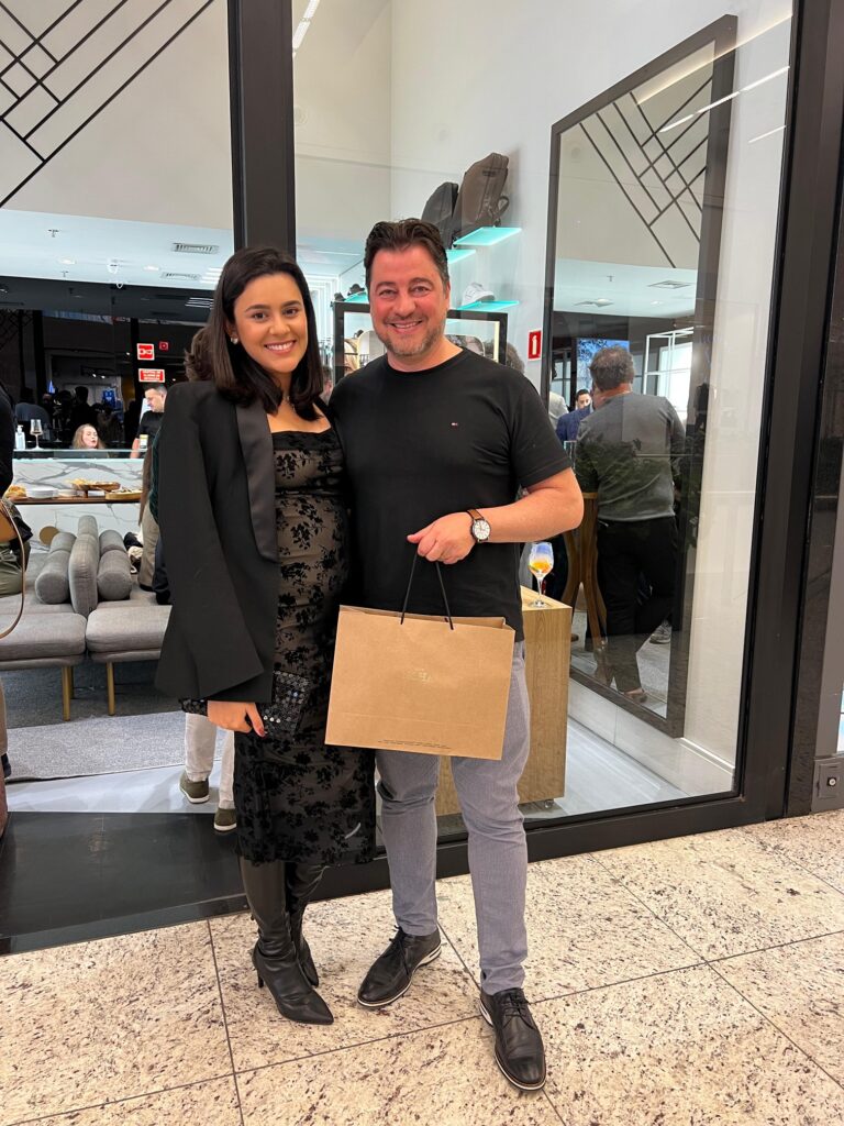 A marca recebeu os convidados para uma degustação de vinhos da Terrazas de Los Andes, vinícola que faz parte do conglomerado de luxo do grupo LVMH, (Louis Vuitton Moët Hennessy), divisão que inclui marcas de renome mundial como Moët & Chandon, Krug, Veuve Clicquot. E o melhor de tudo, o encontro teve uma causa nobre, onde parte da renda das vendas de calçados foi destinado para a instituição Bezalel, onde crianças carentes de escolas públicas de Itajaí recebem aulas de arte. Diego dos Santos, artista que comanda a instituição, ainda pintou taças que foram distribuídas aos casais presentes.