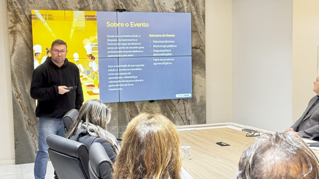 O coordenador do Núcleo de Gastronomia da Associação Empresarial de Lages (ACIL), Andrigo Silva Pereira, apresentou aos diretores da entidade os detalhes da terceira edição do Simpósio Nacional de Gastronomia e Turismo da Serra Catarinense. O evento acontecerá nos dias 27 e 28 de outubro de 2025, no Centroserra Convention Center, e tem como objetivo consolidar Lages como referência nacional no setor gastronômico e turístico.