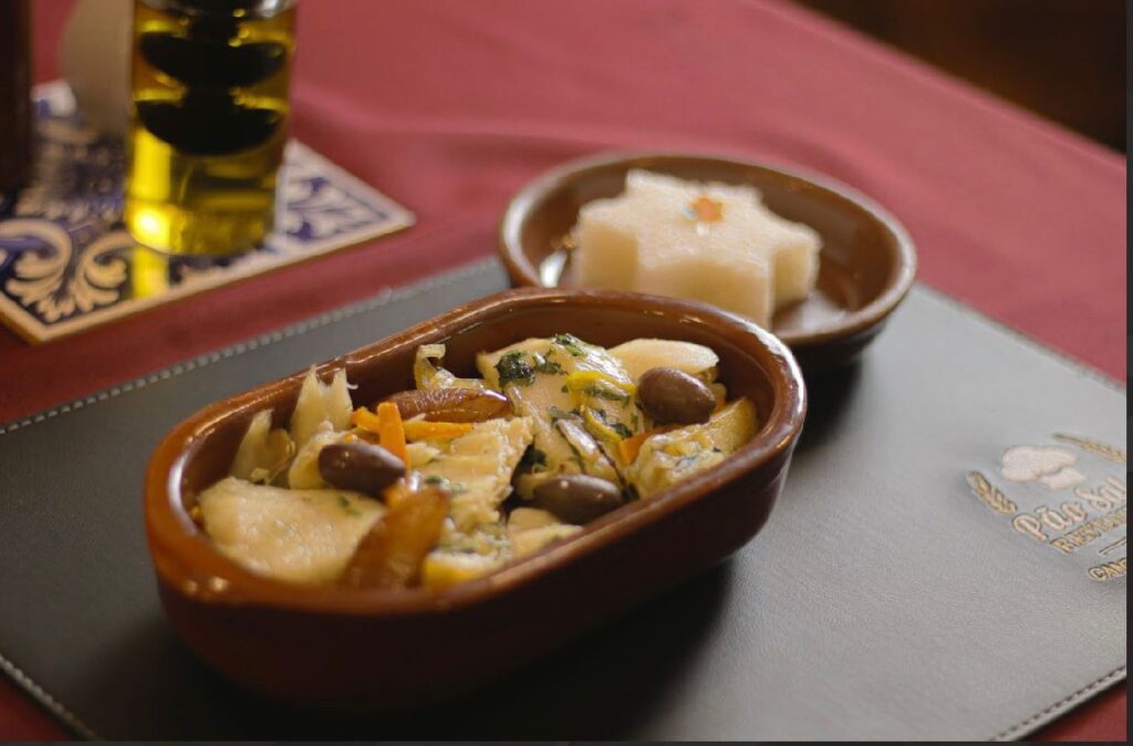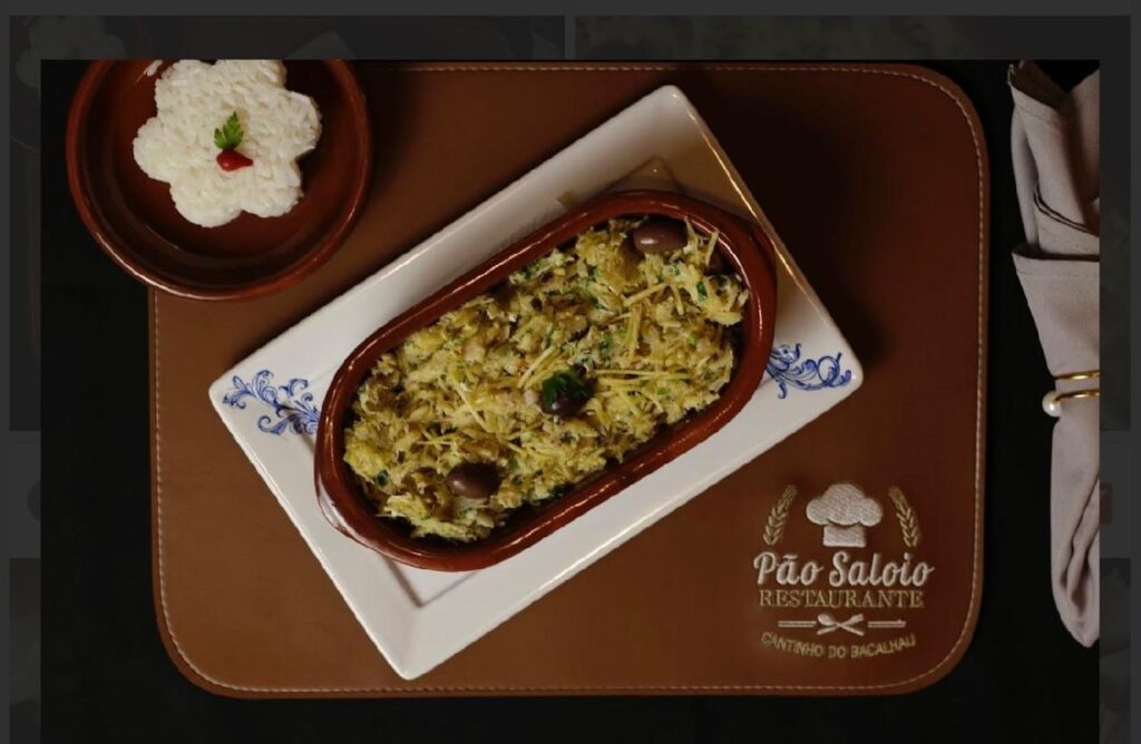 Na mesa do Pão Saloio, cada receita é uma viagem à alma de Portugal. Entre os destaques, o Bacalhau à Lagareiro, preparado com azeite extra virgem, alho dourado e batatas ao murro, conquista pela simplicidade e pelo sabor intenso — um clássico que resume a essência da culinária lusitana.