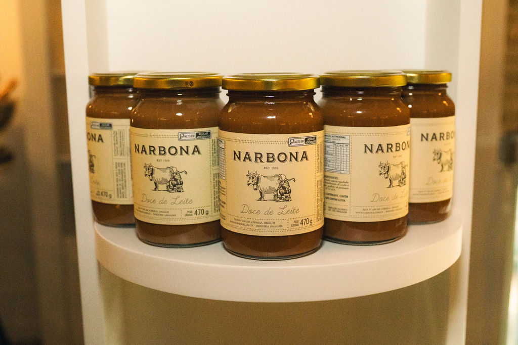 As sobremesas têm destaque garantido, com receitas que valorizam o carro-chefe da marca: o doce de leite artesanal, considerado um dos melhores do mundo. Entre elas, a Panqueca de Doce de Leite Narbona, o Petit Gateau de Doce de Leite e o tradicional Flan Narbona. Na loja gourmet, os clientes encontram uma curadoria de produtos exclusivos da marca, como vinhos de produção própria, geleias, chimichurri, pimentas, mel de campo, granola caseira e o premiado doce de leite — todos trazidos diretamente do Uruguai.