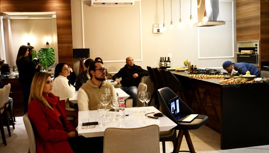 Para tornar a experiência ainda mais agradável, os convidados foram recebidos com sushis frescos e variados, harmonizados com vinhos selecionados, criando o clima perfeito para uma noite de integração e bons negócios.