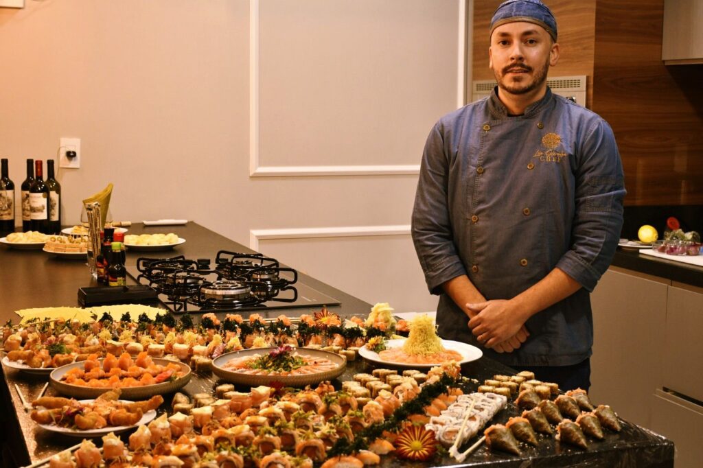 Após as apresentações, o talentoso Chef Léo Oliveira comandou a experiência gastronômica com seus sushis exclusivos e deliciosos, tornando o evento ainda mais especial